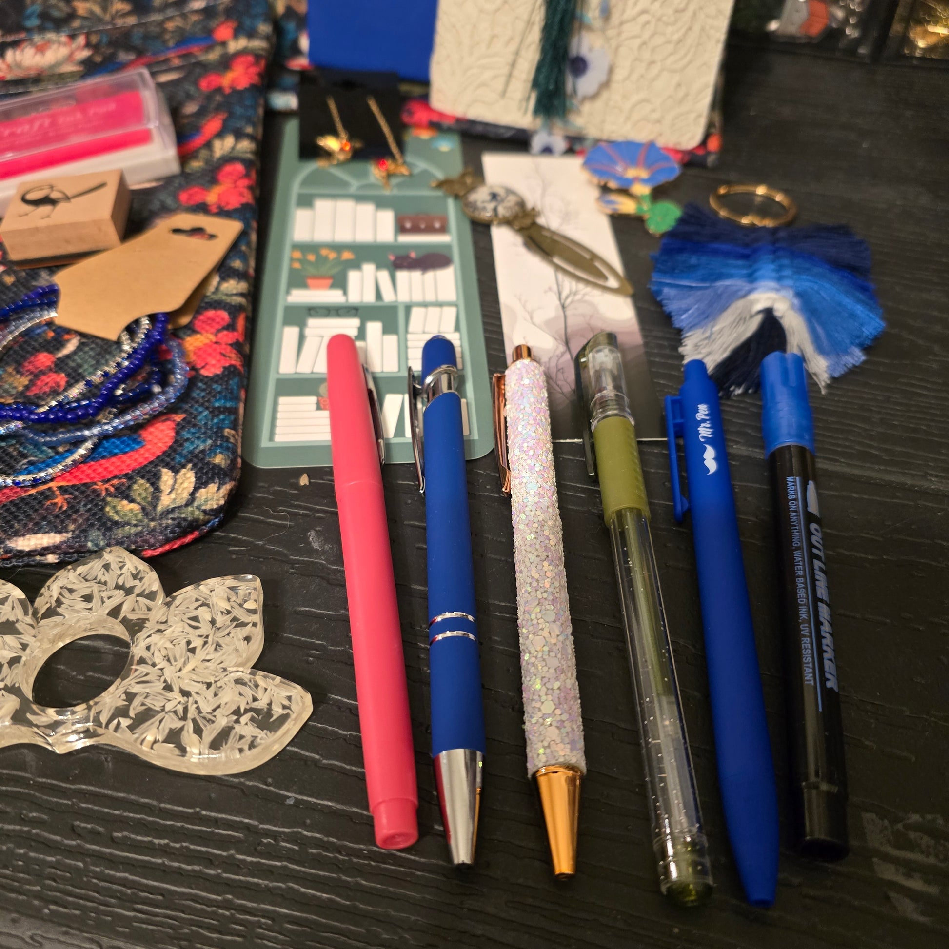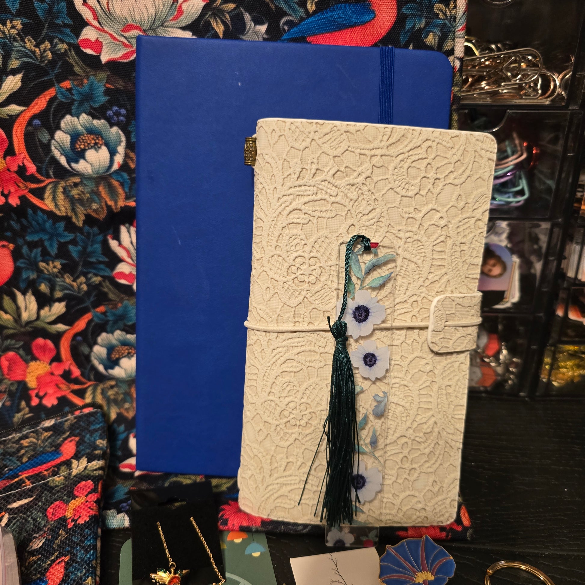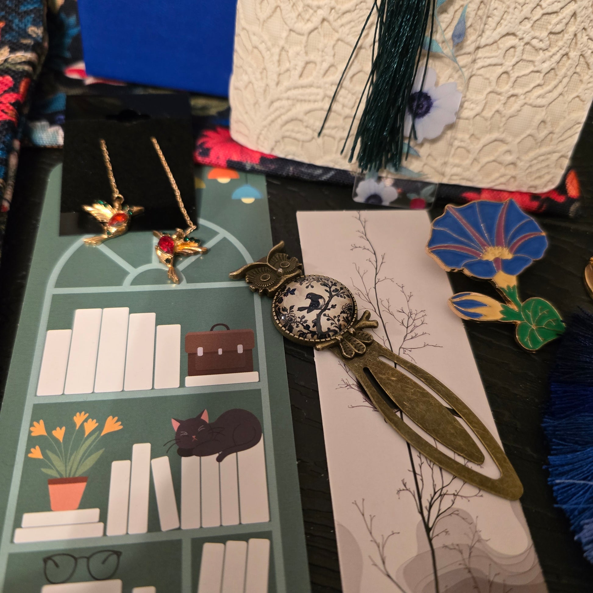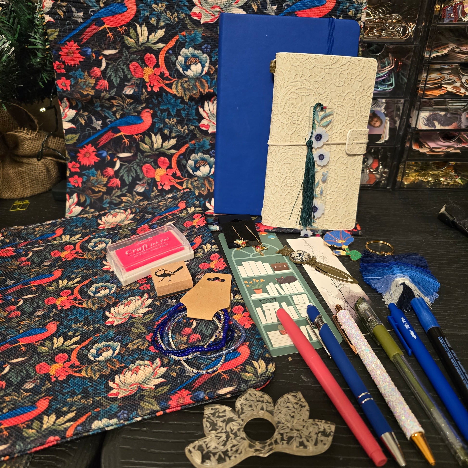 A bold and beautiful mix of bookish and office essentials inspired by bright royal blues, hot salmon pinks, and deep forest greens. Featuring elegant pheasants and playful woodland birds, this bundle adds a striking pop of color and nature-inspired charm to any desk, planner, or reading nook.